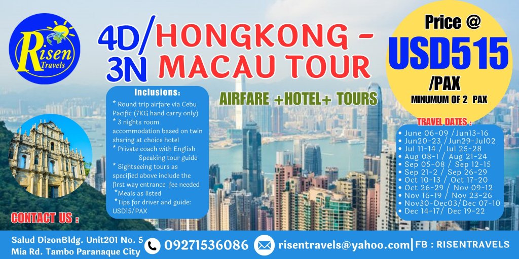 • SIC compulsory half day Hong Kong City tour ( fixed on day 2)